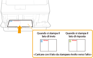 Inserire la cartolina con il lato di stampa rivolto verso l'alto e con il bordo corto verso la macchina se il tipo di cartolina è normale o 4 in 1 oppure con il bordo lungo verso la macchina se la cartolina è del tipo preaffrancata.