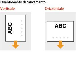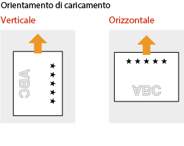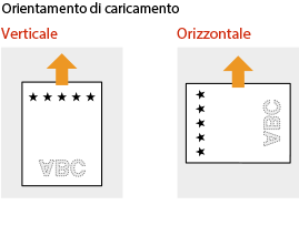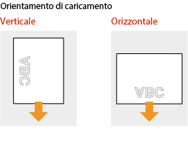 Questa sezione descrive primariamente il modo per caricare carta già stampata, con il giusto posizionamento delle due facce e il giusto orientamento. Per la procedura generale di caricamento della carta nel cassetto carta o nel vassoio multiuso, vedere quanto segue.