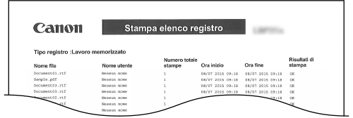 È possibile stampare un registro di stampa dei documenti memorizzati nella scheda SD installata nella macchina, in formato elenco.