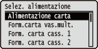 ( ) sul pannello operativo, viene visualizzato il menu Seleziona alimentatore. Le impostazioni predefinite sono contrassegnate con una croce ( ). |