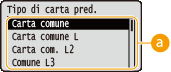 Impostazioni comuniLe impostazioni sono le stesse di quelle per <Alimentazione carta> nel Menu Configurazione. Le impostazioni specificate qui vengono applicate anche alle impostazioni di <Alimentazione carta>.