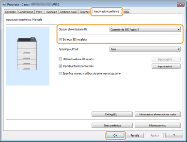 È possibile utilizzare il driver di stampa PCL6, così come il driver della stampante UFR II. Le impostazioni di stampa disponibili variano a seconda del driver di stampa. Per ulteriori informazioni, fare clic su [?] nella schermata di ciascun driver stampante.