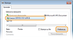 Prima di stampare, specificare formato e tipo di carta caricata nell'alimentazione carta.