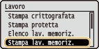 per selezionare <Stampa lav. memoriz.>, quindi premere