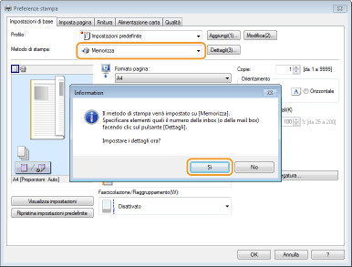 Selezionare [Memorizza] in [Metodo di stampa] e fare clic su [Sì].
