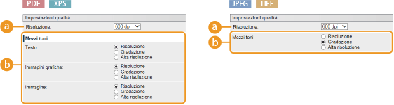 L'alta risoluzione consente di riprodurre con precisione i bordi dei caratteri e delle immagini. Questa modalità di stampa è adatta per stampare dati che contengono molti caratteri di piccole dimensioni.