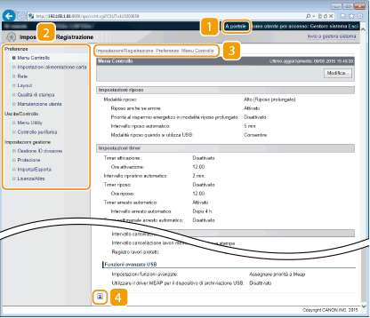 È possibile modificare le impostazioni nella pagina [Impostazioni/Registrazione] solo dopo aver effettuato l'accesso in Modalità gestione.