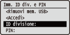 Registrare un ID divisione e impostare un PIN corrispondente. Si possono registrare fino a 300 ID divisione.