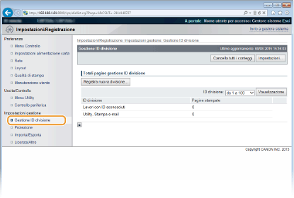 Fare clic su [Gestione ID divisione] e registrare o modificare gli ID reparto.