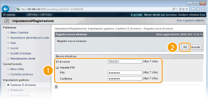 Selezionare la casella di controllo [Utilizzo Conferma PIN gestione ID divisione]