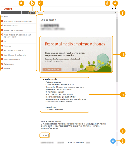 Haga clic para visualizar información sobre cómo ver el Guía de usuario, cómo realizar una búsqueda y otra información.