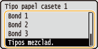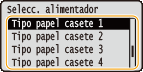 Seleccione <Tipo papel casete 1> a <Tama. papel casete 4> y pulse