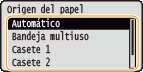 Seleccione el origen de papel cuya posición de impresión desea comprobar y pulse
