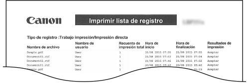 Puede imprimir un registro de documentos impresos desde el ordenador en forma de lista.