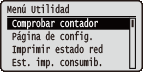 Puede mostrar el número total de páginas impresas e imprimir la información interna del sistema. Si pulsa  (  ) en el panel de control, aparecerá el menú Utilidad. Puede especificar las opciones que se describen a continuación cuando el equipo no está en línea.