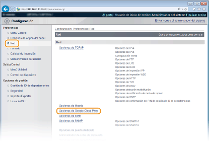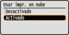 Habilite la función Google Cloud Print del equipo. También podrá desactivar la función Google Cloud Print del equipo.