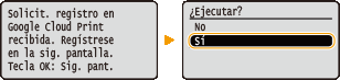 También podrá registrar el equipo desde un dispositivo móvil o Google Chrome. La pantalla del equipo mostrará la siguiente confirmación antes de la finalización del registro. Realice  <Sí>  para finalizar el registro.