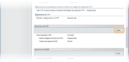 Haga clic en [Editar] en [Opciones de LPD].