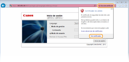 Introduzca "https://<dirección IP del equipo>/" en el campo de dirección y pulse la tecla [ENTRAR].