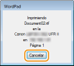 Cancelación desde una aplicaciónEn algunas aplicaciones, aparecerá una pantalla como la siguiente. Puede cancelar la impresión haciendo clic en [Cancelar].