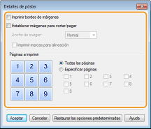 Las opciones de tamaño de los pósteres no pueden seleccionarse cuando está habilitada la impresión a doble cara. Seleccione [Impresión a una cara] en [Una cara/Doble cara/Impresión en cuadernillo] y, a continuación, seleccione una opción de tamaño de póster.