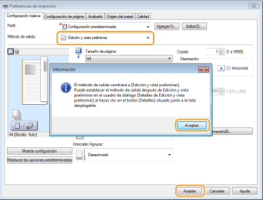 Seleccione [Edición y vista preliminar] en [Método de salida].