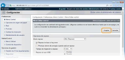 Al aparecer la pantalla que se muestra a continuación, introduzca el PIN y haga clic en [Aceptar].
