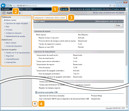 Puede cambiar las opciones en la página [Configuración] solo cuando haya iniciado una sesión en Modo de gestión.
