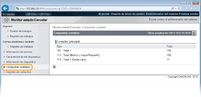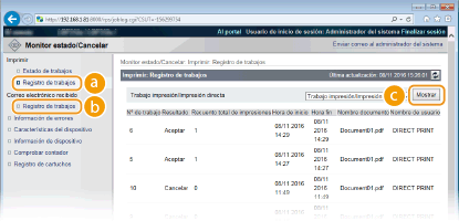 Se muestra el estado de todos los trabajos de impresión independientemente de las opciones de la Gestión de ID de departamentos.