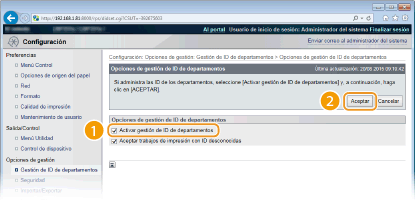 Después de registrar los ID de departamento necesarios, habilite la Administración de ID de departamento.