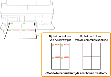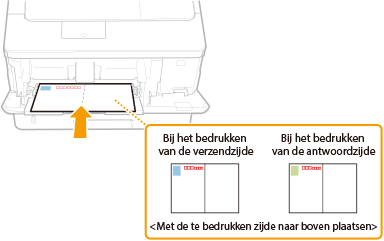 Plaats de briefkaart met de afdrukzijde naar boven en met de korte zijde naar voren als het type briefkaart gangbaar is of 4-op-1 of de lange rand naar het apparaat, bij een antwoordkaart.