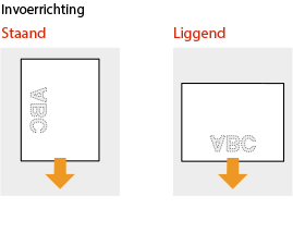 Als u papier gebruikt waarop vooraf een logo is afgedrukt, let u bij het plaatsen op de invoerrichting van het papier. Zorg dat het papier goed is geplaatst zodat er op de juiste kant van het papier met een logo wordt afgedrukt.