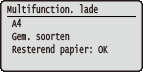 Selecteer deze optie om het momenteel opgegeven papierformaat en -type weer te geven, en het resterende papierniveau voor iedere papierbron.