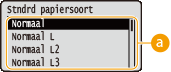 Algemene instellingenDe instellingen zijn hetzelfde als die voor <Papierbron> in het Menu Instellingen. De hier opgegeven instellingen gelden ook voor de instellingen <Papierbron>.