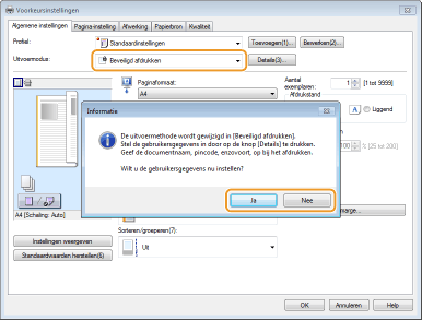 Selecteer [Beveiligd afdrukken] in [Uitvoermodus].