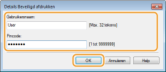 Voer de gebruikersnaam voor [Gebruikersnaam] en de pincode voor [Pincode] in en klik op [OK].