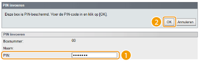Wanneer het onderstaande scherm wordt weergegeven, voer dan de pincode in en klik op [OK].
