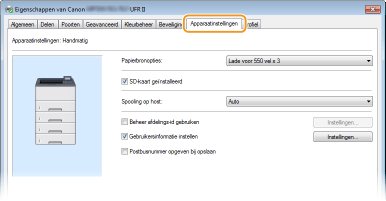 Klik op het tabblad [Apparaatinstellingen] en geef de vereiste instellingen op.