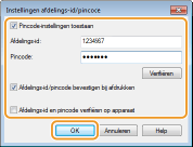 [Gebruik PIN-bevestiging voor Afdeling-ID beheer]