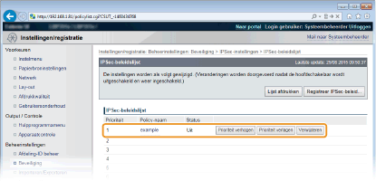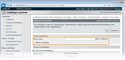 Het bedieningspaneel gebruikenTevens kunt u IPSec communicatie in- of uitschakelen in het instellingenmenu van het bedieningspaneel. IPSec
