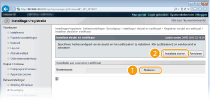 Klik op [Instellingen sleutel en certificaat] voor het installeren van een sleutelpaar, of [Instellingen CA-certificaat] voor het installeren van een CA-certificaat.