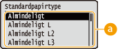 Asterisk (*)Indstillinger med en asterisk (*) vises ikke afhængigt af de andre indstillinger og afhængigt af, om der er installeret valgfri papirindfører på maskinen.