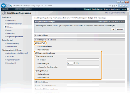 Kontrol af, om indstillingerne er korrekteSørg for, at skærmbilledet for Brugerinterface til fjernbetjening kan vises sammen med din computer ved at bruge maskinens IPv6-adresse. Brug af Brugerinterface til fjernbetjening