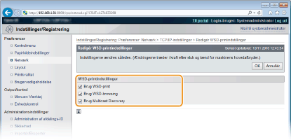 Marker afkrydsningsfeltet for at udskrive via WSD. Hvis du ikke bruger dette, skal du fjerne markeringen i afkrydsningsfeltet.