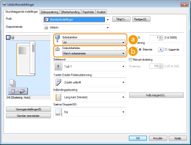 Før du udskriver, skal du angive papirformatet og -typen for det papir, der er lagt i papirkilden.