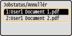 Annullering fra Brugerinterface til fjernbetjeningDu kan annullere udskrivning via siden [Jobstatus] på Fjern-UI: Kontrol af den aktuelle status for dokumenter til udskrivning