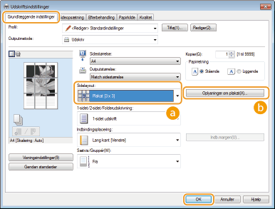Du kan udskrive en side i et dokument på flere sider. Hvis du f.eks. laver et etsidet dokument i A4-format ni gange større, får du en plakat med en størrelse på 3 x 3 ark i A4 -format, når du udskriver dokumentet og sætter dem sammen.