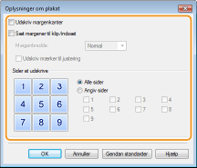 På følgende skærm kan du foretage indstillinger for kanter og indsætning af marginer. Du kan få flere oplysninger ved at klikke på [Hjælp] på skærmen for printerdriveren.