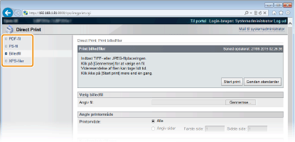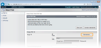 Du kan udskrive en fil fra en webbrowser (Brugerinterface til fjernbetjening) uden at åbne filen. Du kan også udskrive en PDF-fil på internettet ved at angive en internetadresse.