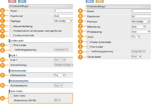 Hvis du angiver udskrivningsindstillingerne for XPS-filerFjern markeringen i afkrydsningsfeltet [Prioritér Print Ticket]. Hvis afkrydsningsfeltet er valgt, er nogle punkter ikke tilgængelige.